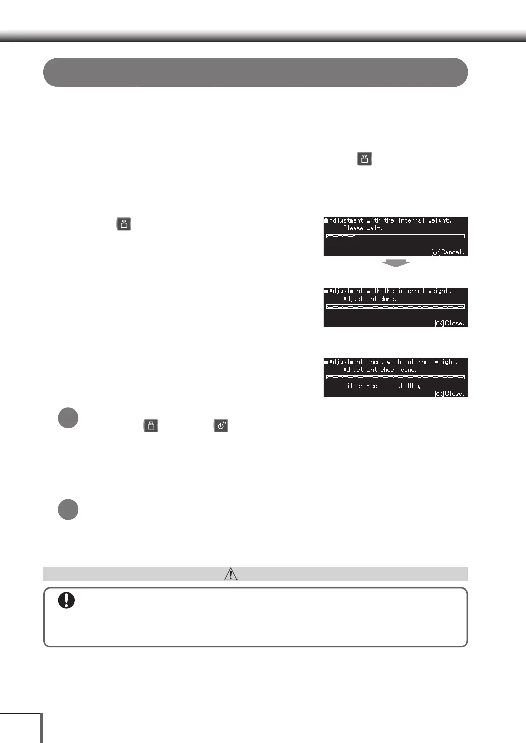 Do not cancel calibration with the keys or weighing tasks when [Please wait a moment] is