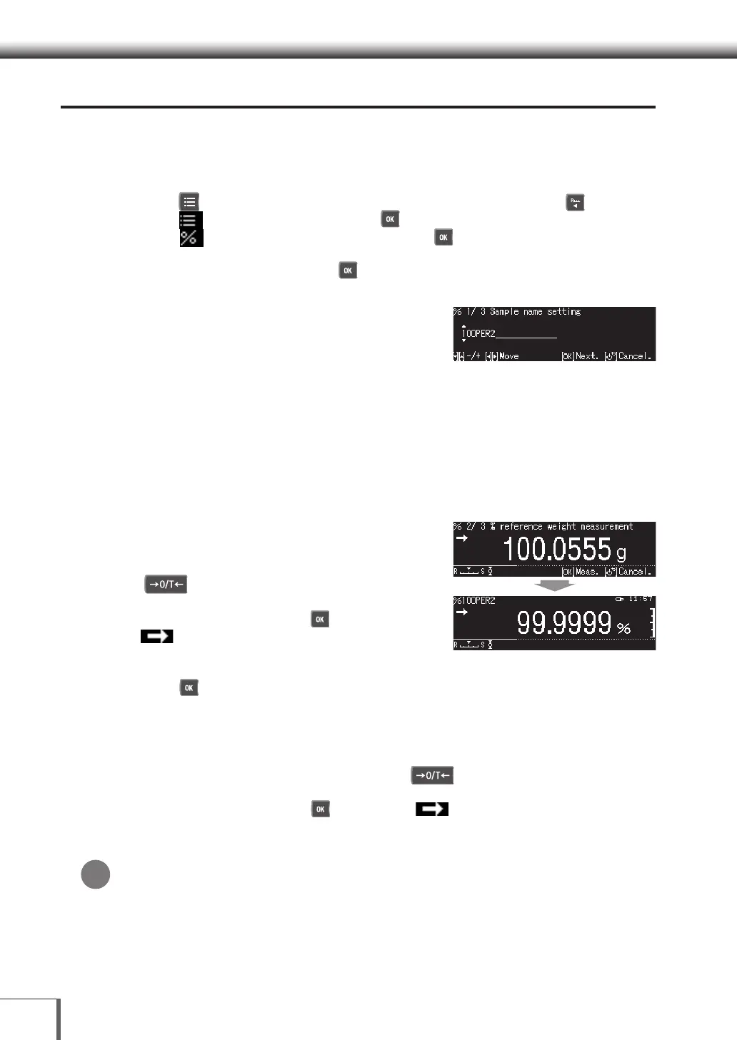 (5) Weigh the sample, and press [ OK] when the [ Stability Mark] is displayed.