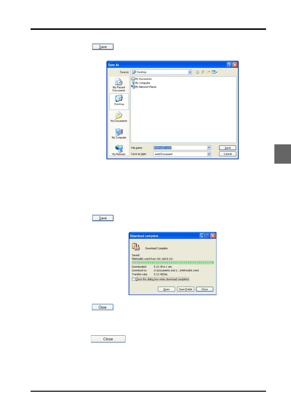 Repeat steps 3 to 9 until all the required files are saved. To end the saving procedure,