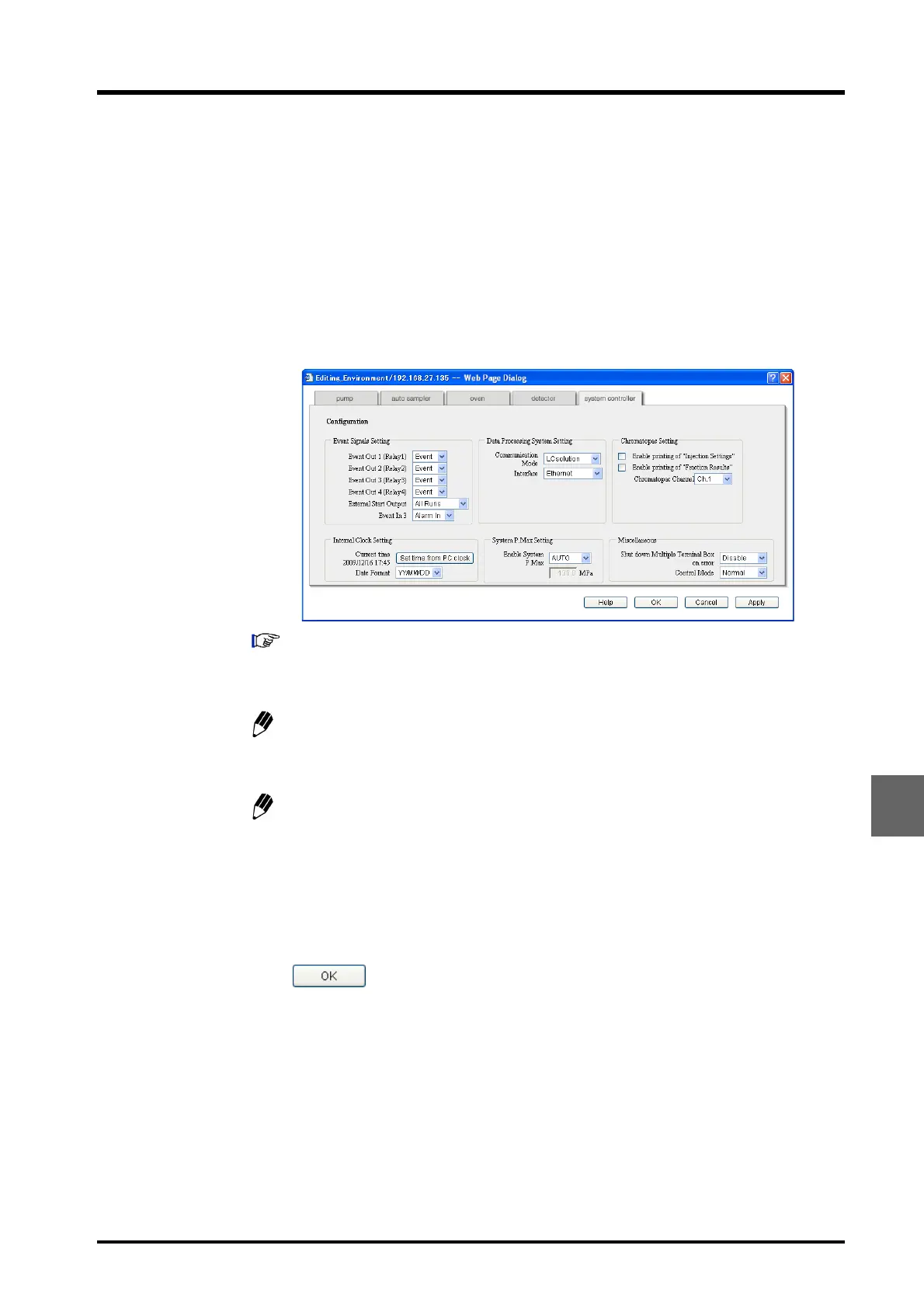 Display the "System Controller" tab page in the "Configuration Parameter" window.
