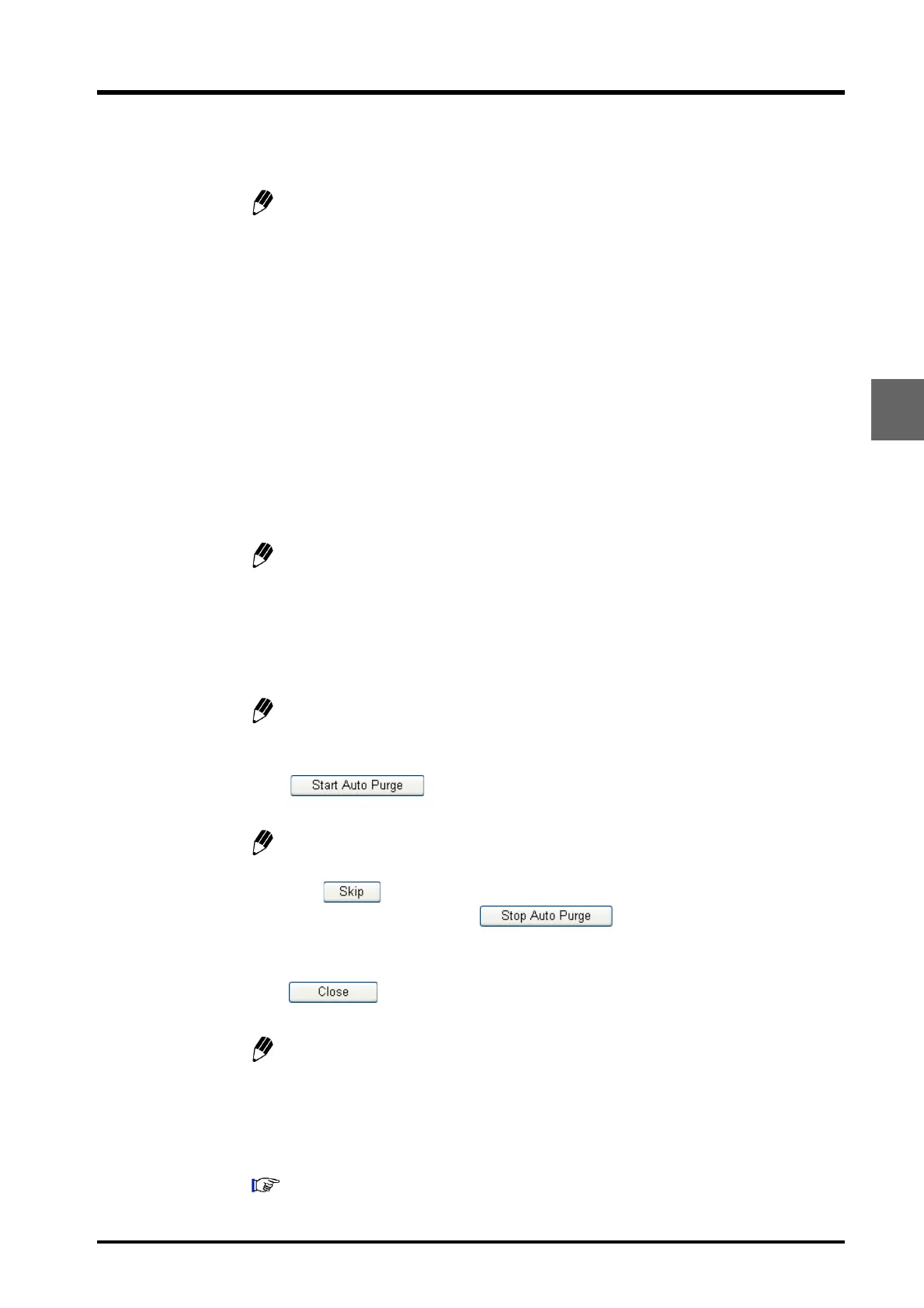 when autopurge is completed. (The status display varies with the autopurge settings.)