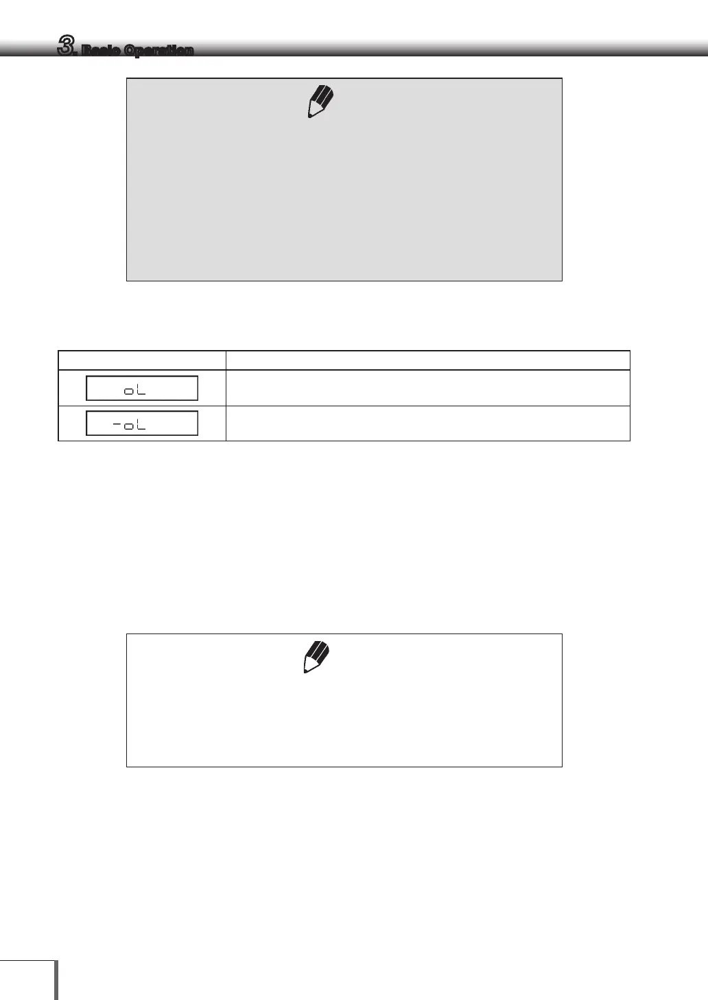 [oL] will be displayed if the weighing capacity or measurement ranges are