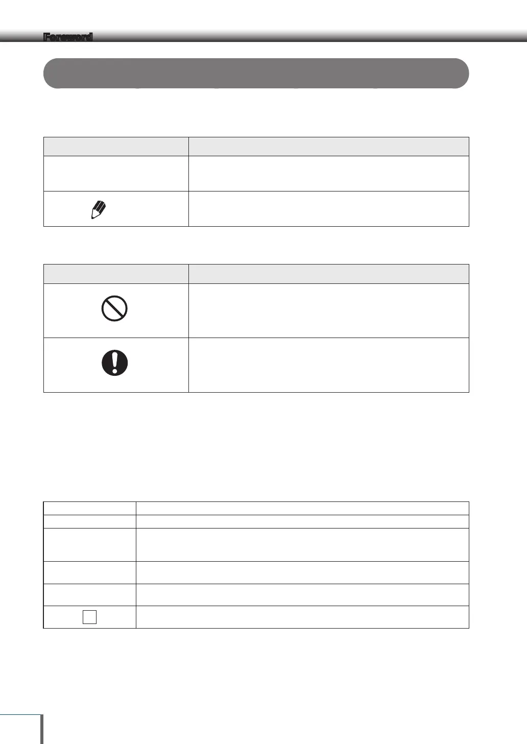 Descriptions of the other pictograms used within the instruction manual are listed below.