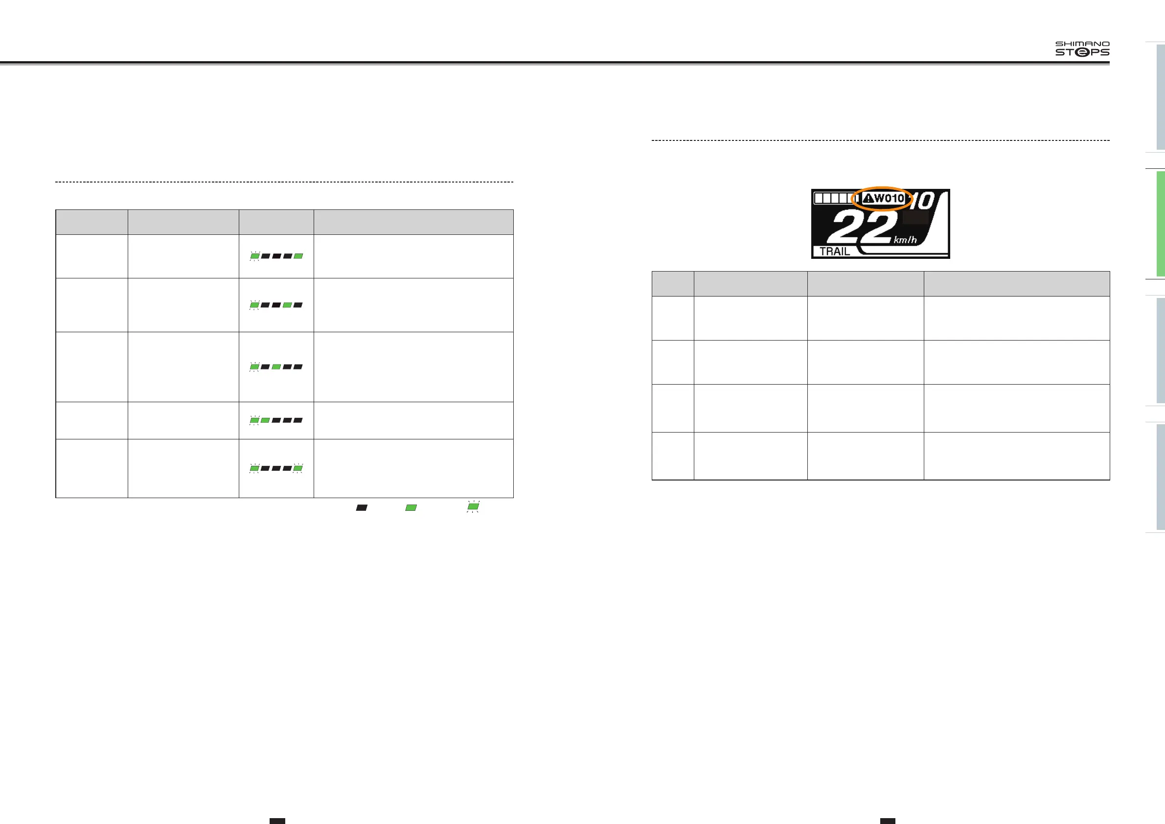 System errors and similar warnings are indicated by the battery LED lamps through various lighting patterns.