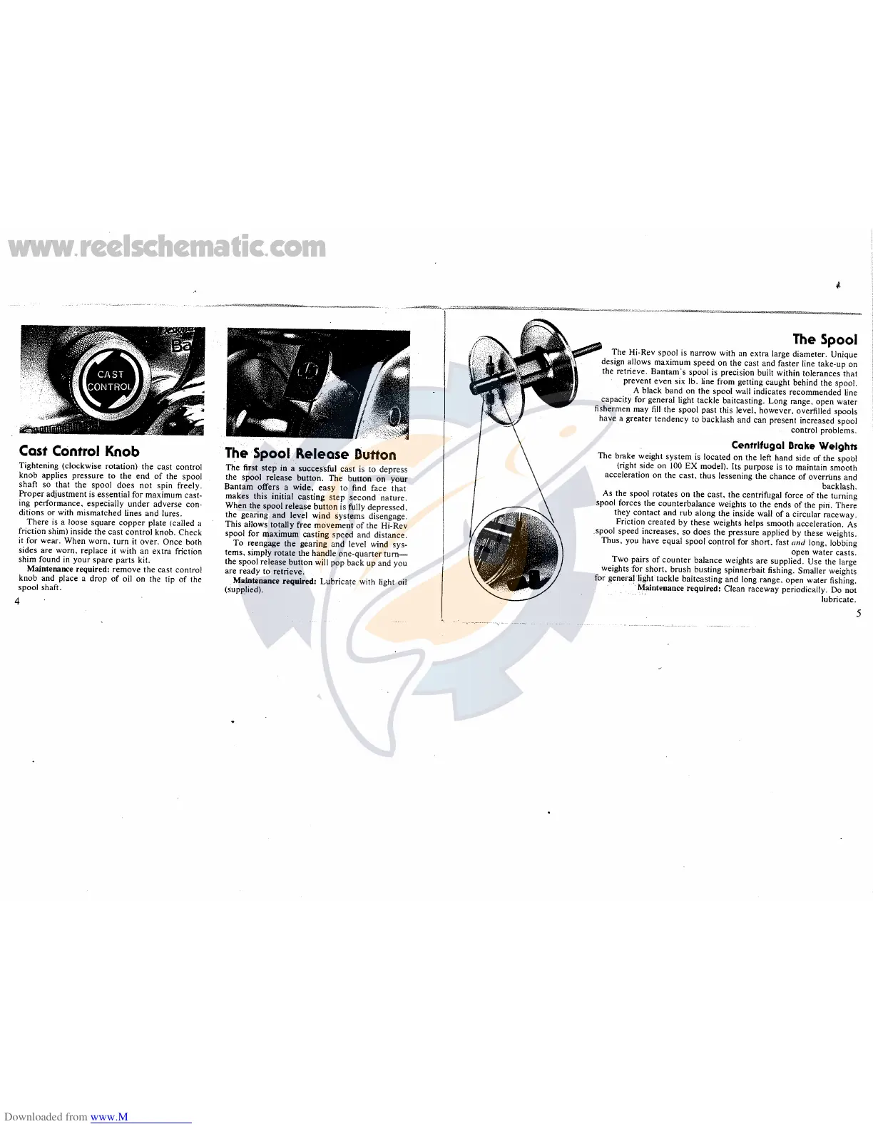 Shimano bantam 100 - Key Reel Components; Cast Control Knob Function; Spool Release Button Operation; Hi-Rev Spool Design