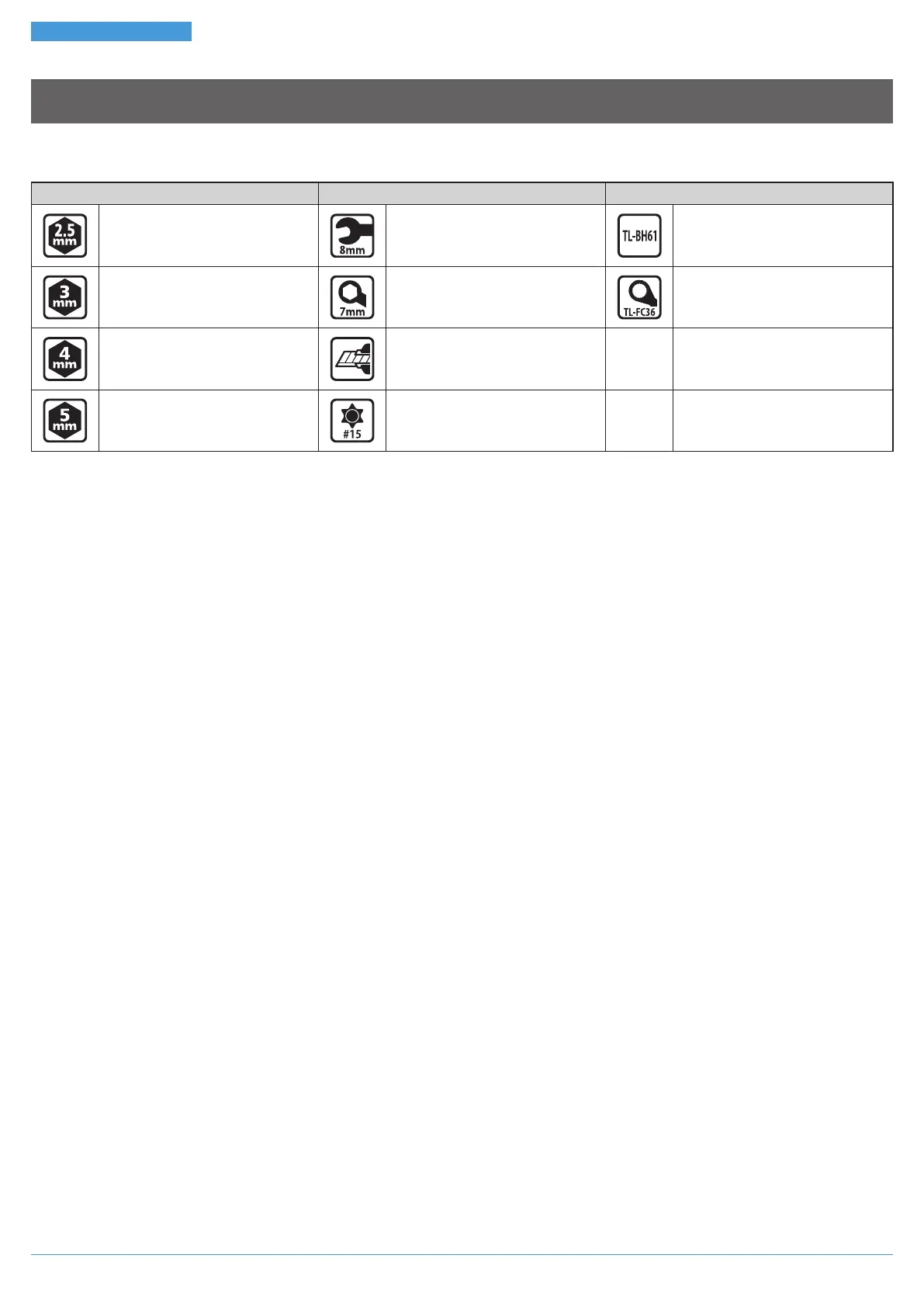 The following tools are needed for installation, adjustment, and maintenance purposes.
