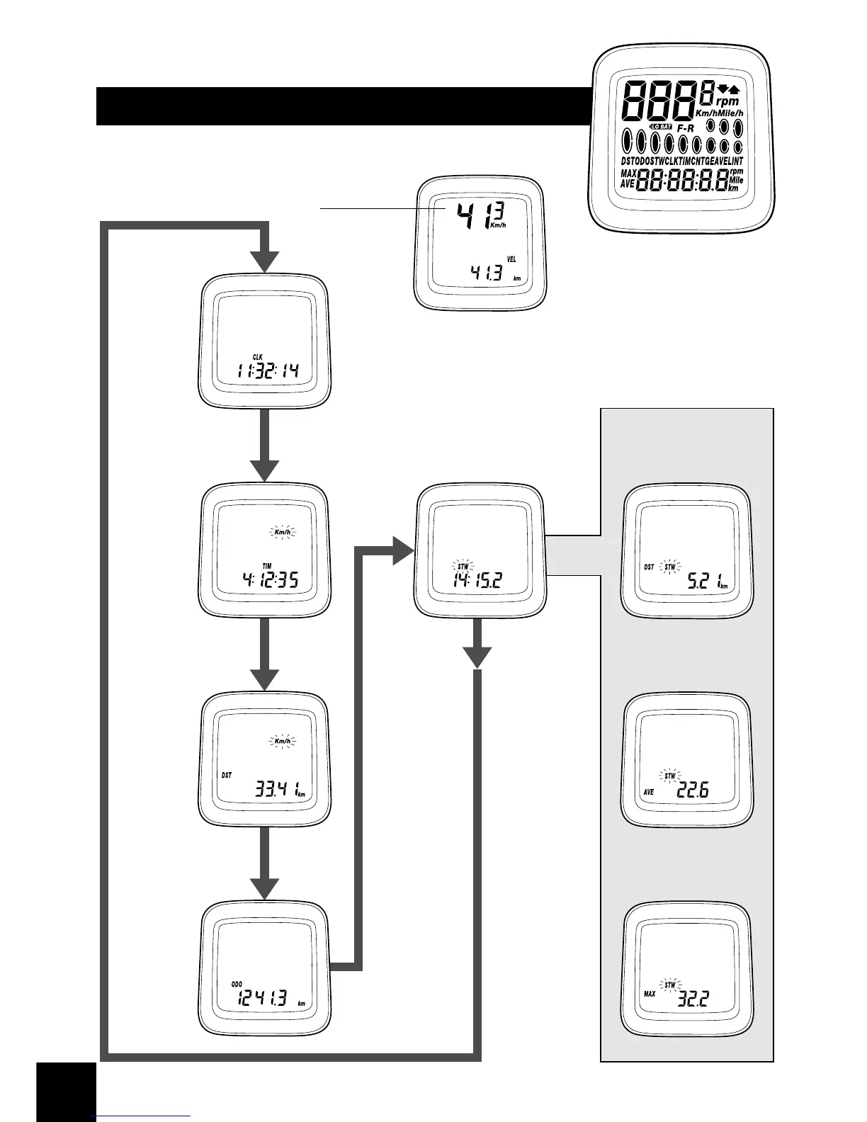 Shimano FlightDeck SC-6500 - 2. Display Contents; 1. Current speed (VEL); 2. Clock (CLK); 3. Trip time (TIM)