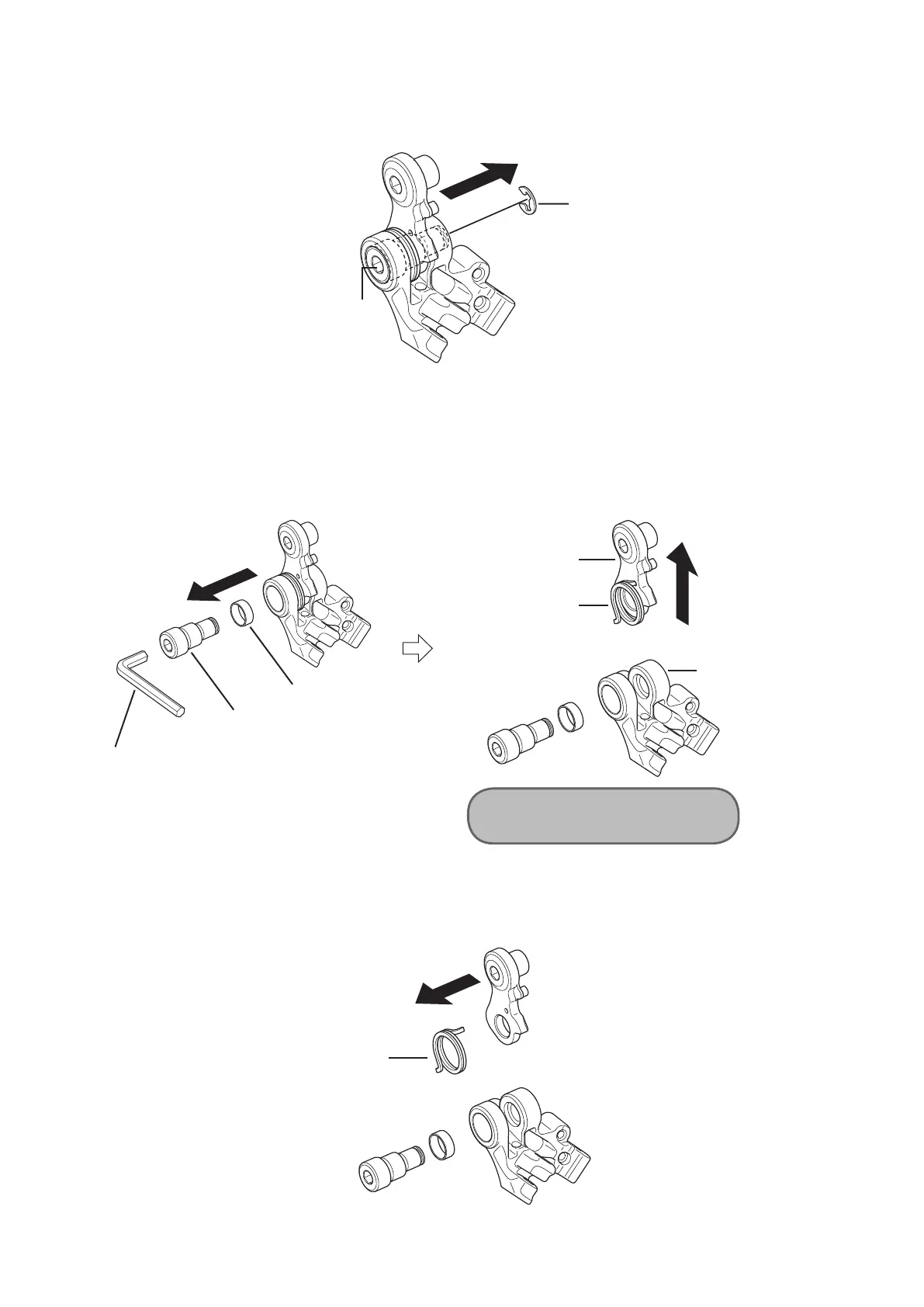 Remove the bracket axle using a 5 mm Allen key, then remove the B tension spring and adapter set from the bracket member.