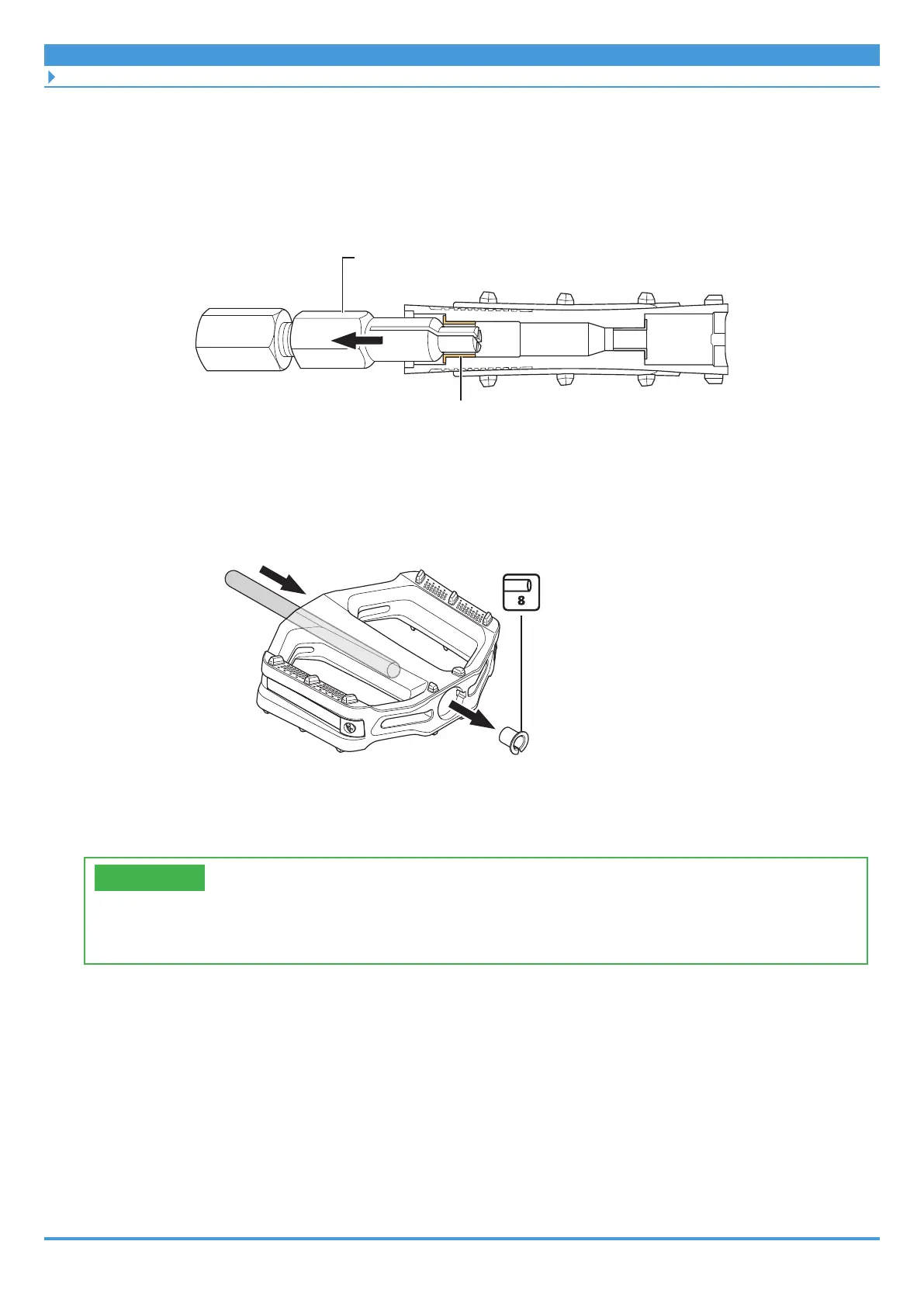 Push it out from the crank axle side with a pin or similar tool [#8].