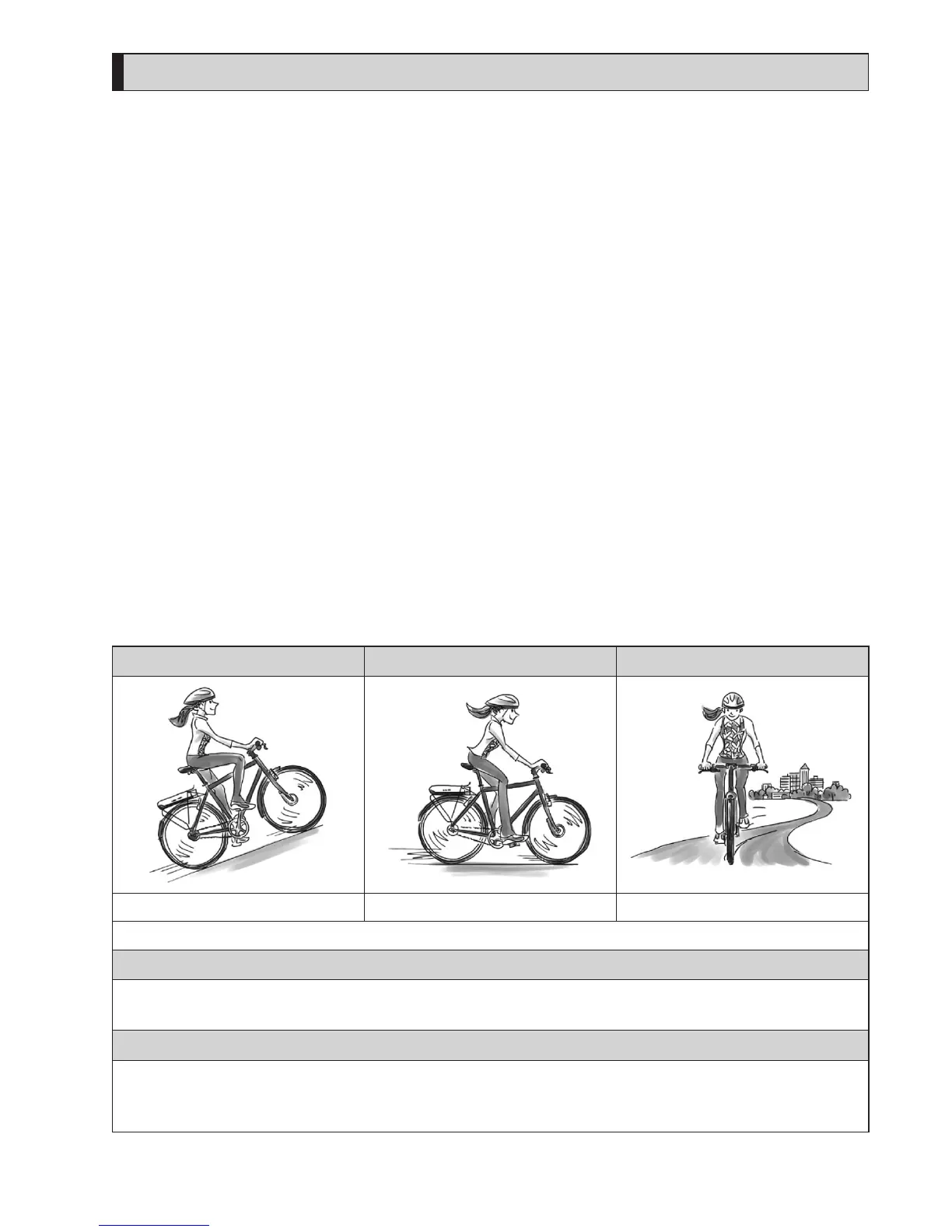 Steep uphill slopes. Gentle slope or level ground. Long distance riding on level ground.