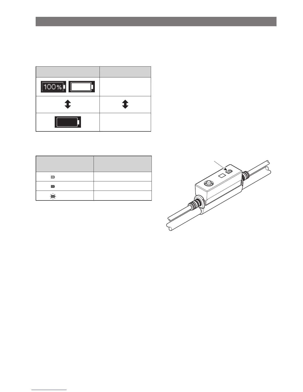 While power is turned on, the outer side LED lamp indicates the battery level.