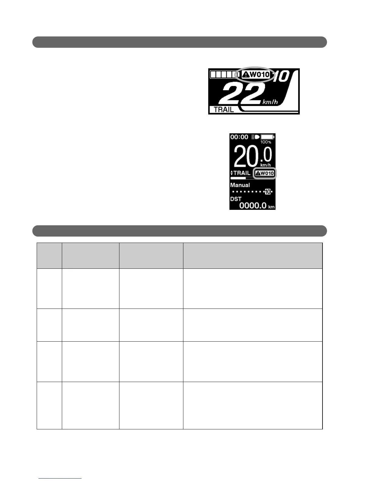 Error messages on the cycle computer