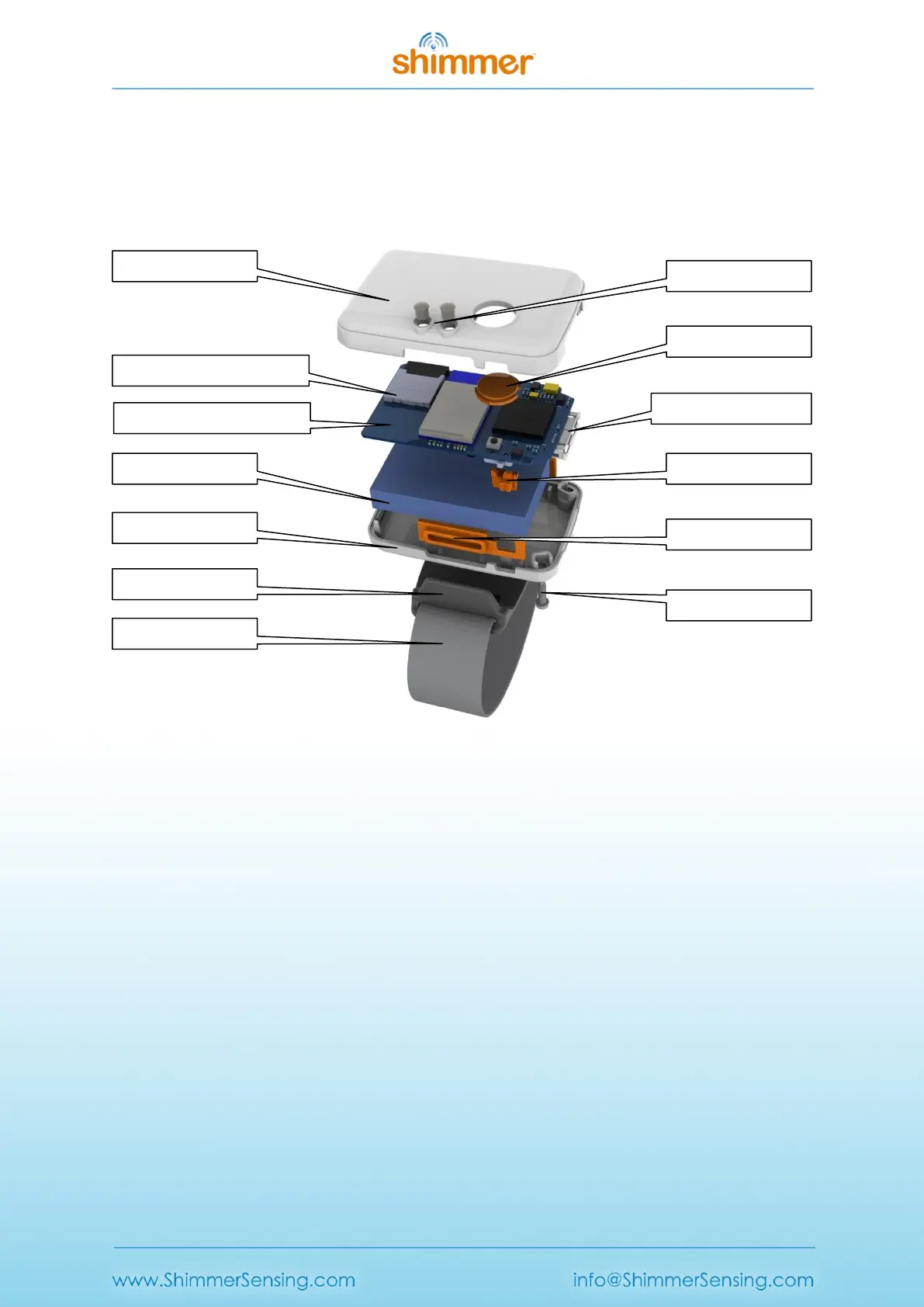 Figure 3-1 shows the individual components of the Shimmer3. To open the case, loosen the two