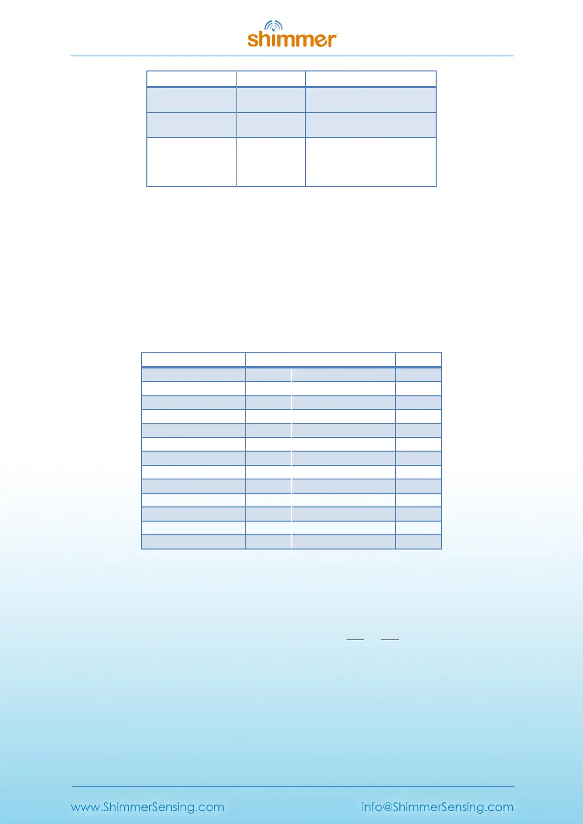 Table 6-2 Shimmer3 Battery Life Estimation Table (LogAndStream – Bluetooth only)