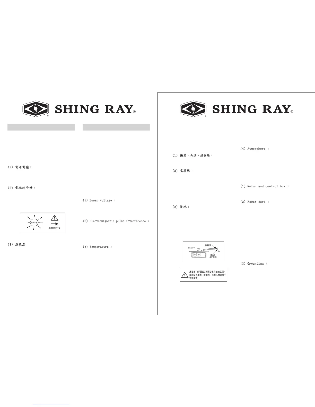 電源電壓請遵照馬達與控制箱 牌