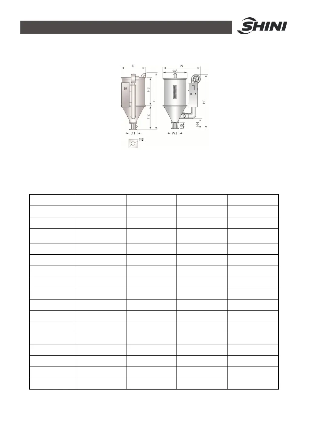 Note: 1) Above loading capacity is based on pellet material of 0.65kg/L in bulk density and 3~5mmin diameter.