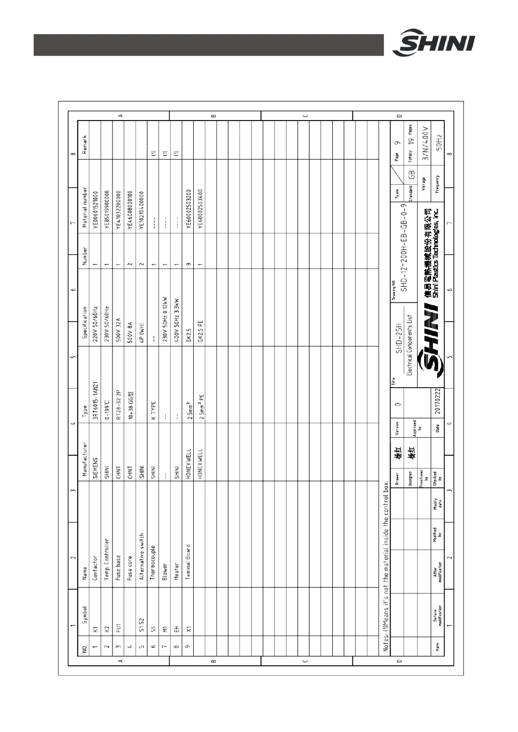 Table 2-7: Electrical Components List (SHD-25H-EB)