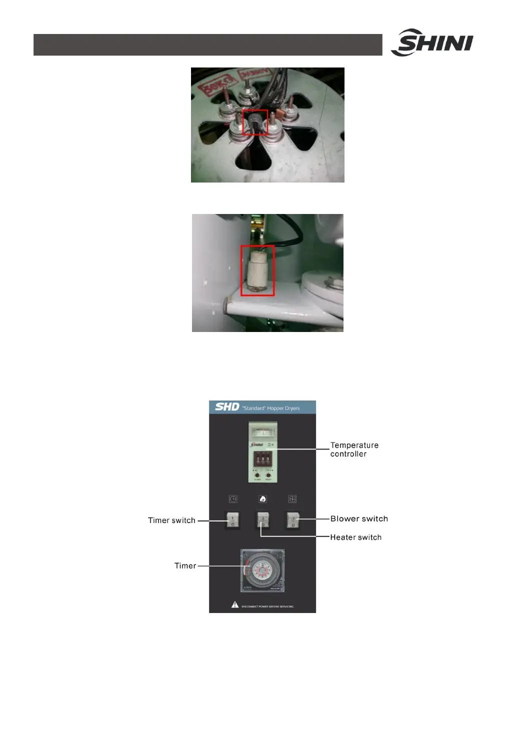 Shini SHD-EB - Control Panel with Dryer; Picture 4-3: Lead Sheet Fuse; Picture 4-4: Overheating Protector; Picture 4-5: Control Panel (with Timer)
