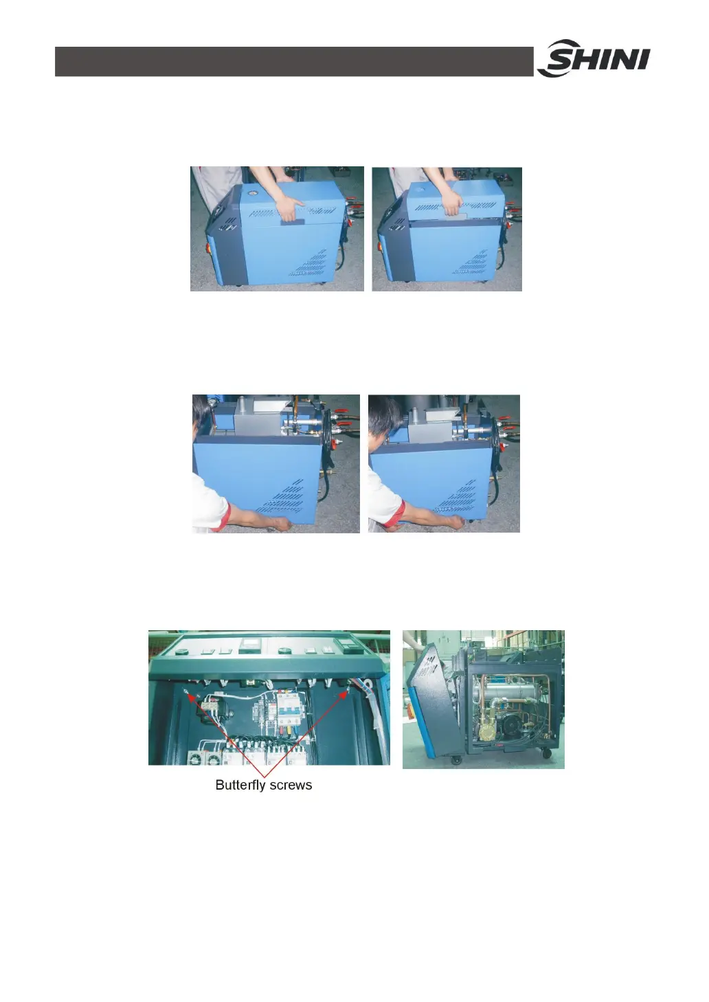 3) Open the cover of control box. Screw off two butterfly screws to unlock the
