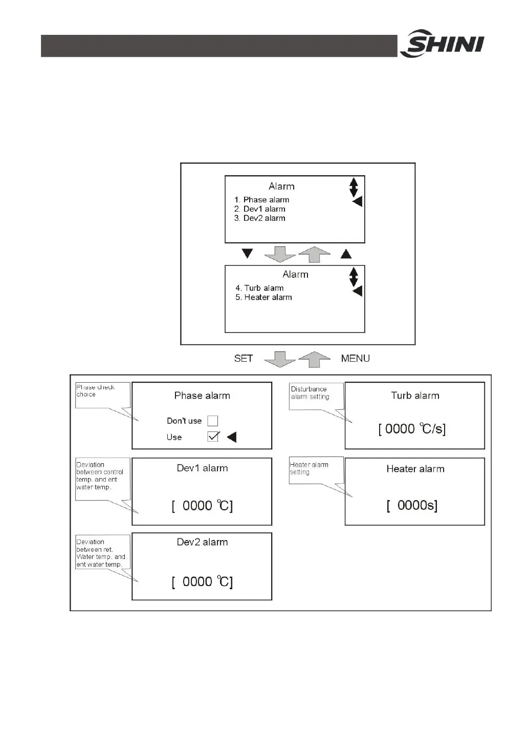 • HEATER ALARM——based on auctual set value. If factory default value is 0,