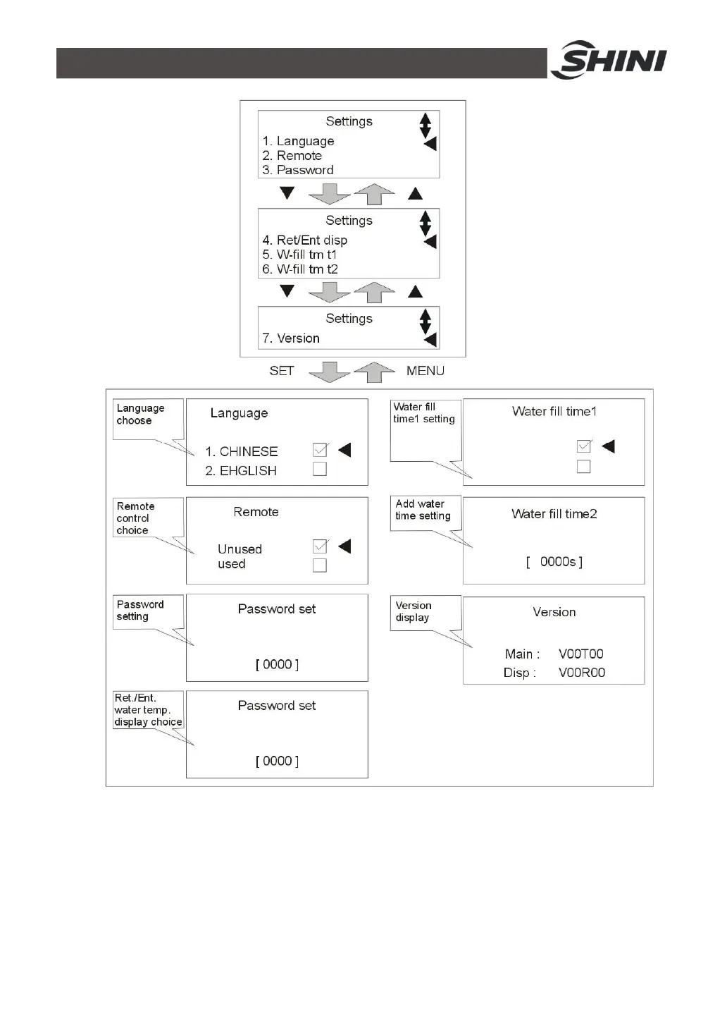 move cursor then press ▲/▼ key to change values. Finally press SET key to