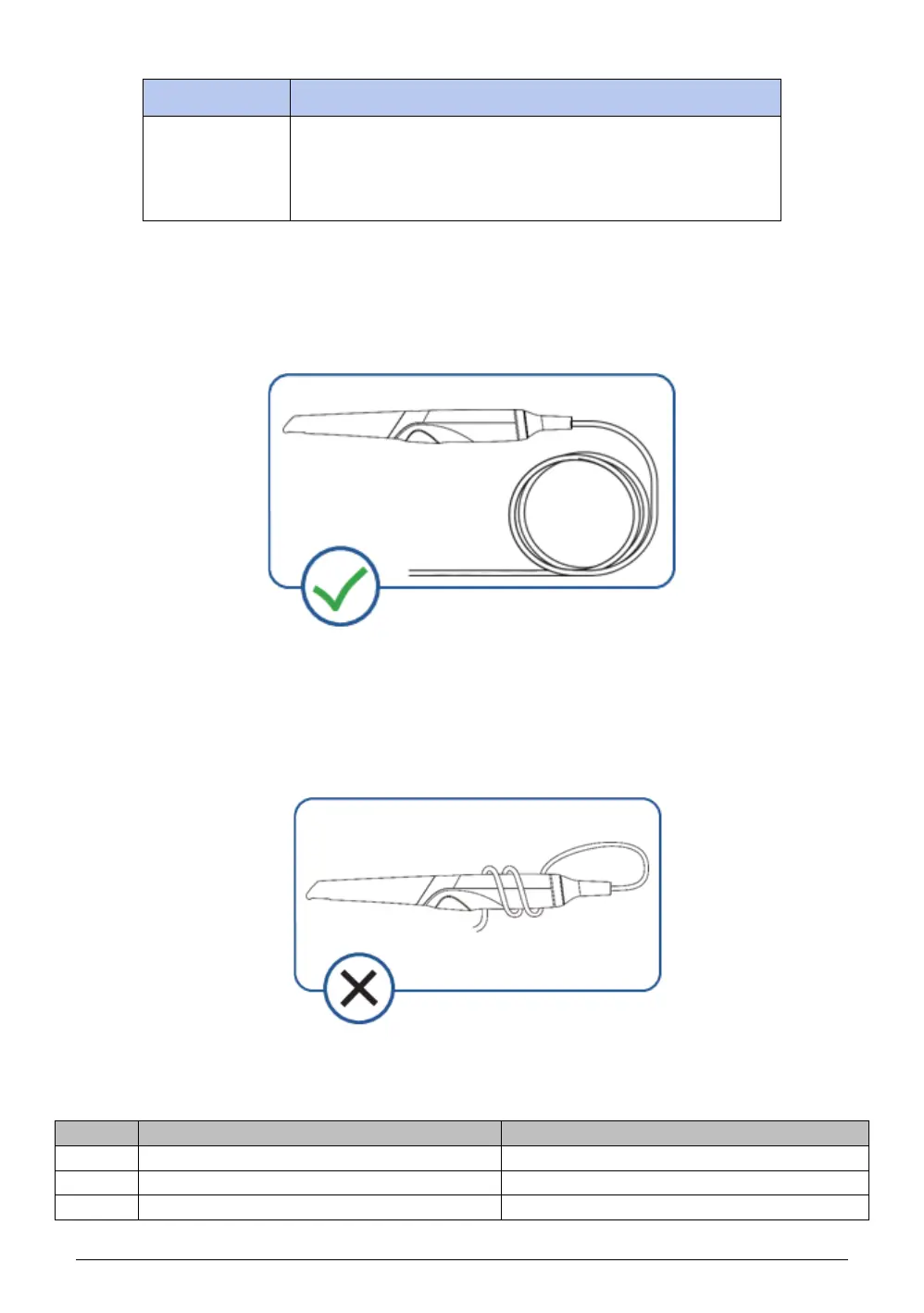 Do NOT roll the cable over the handle of the scanner or even bend the cable sharply. The