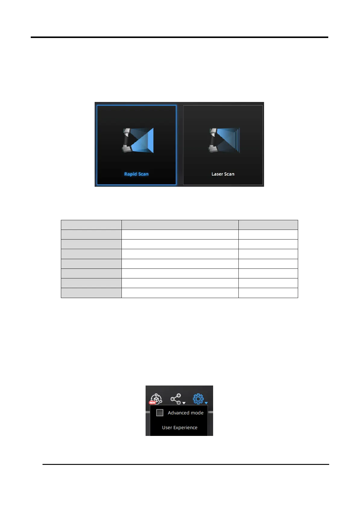 2. The advanced mode can be turned on / off only after the scan mode being selected.