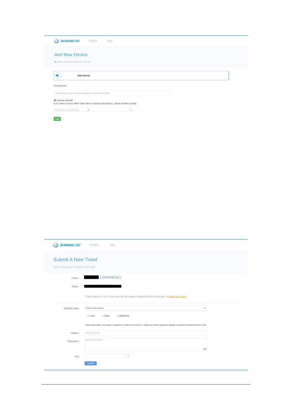 Shining 3D EinScan Pro 2X - Submitting Support Tickets and Contact