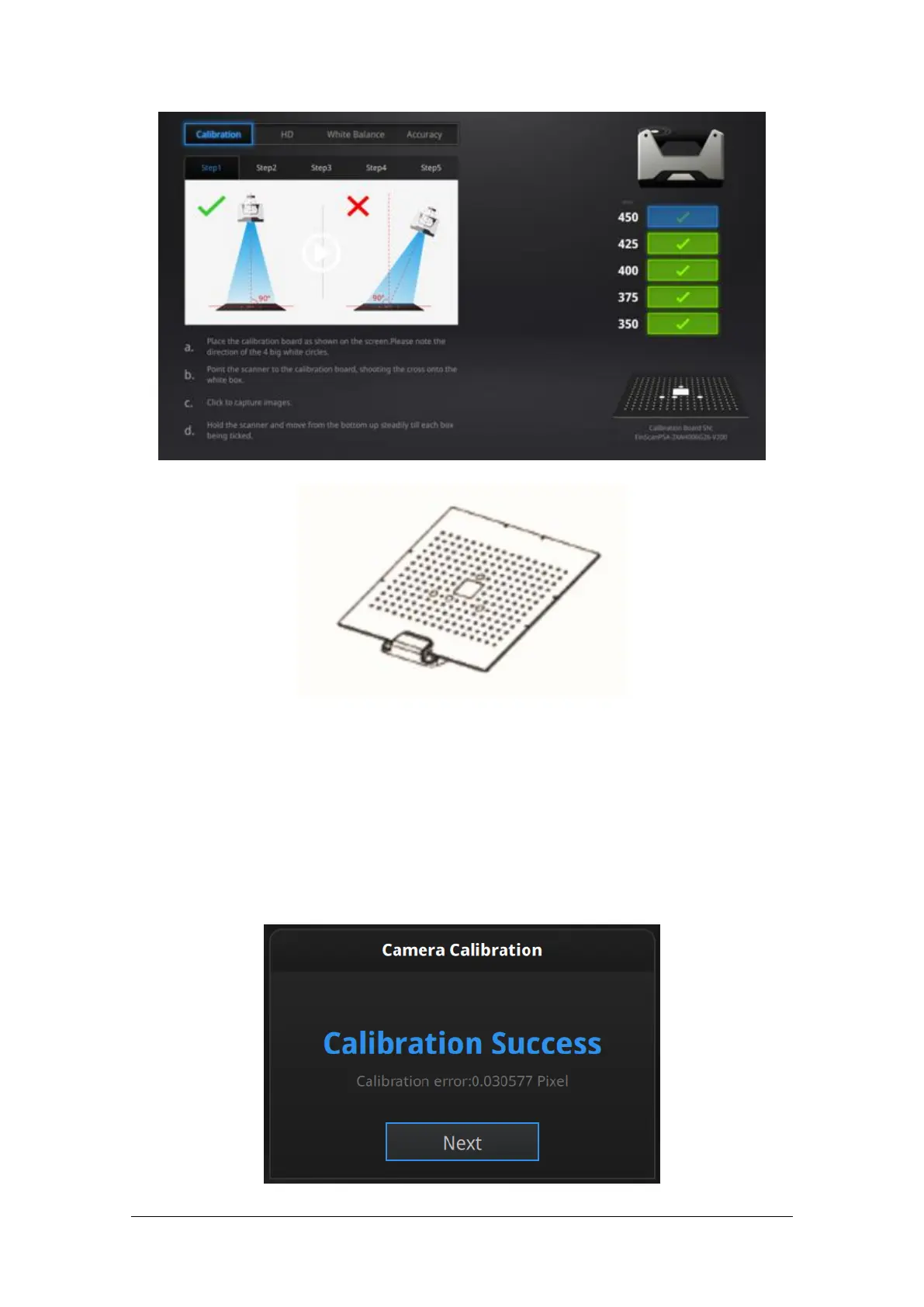 Calibration board on its support for step 2