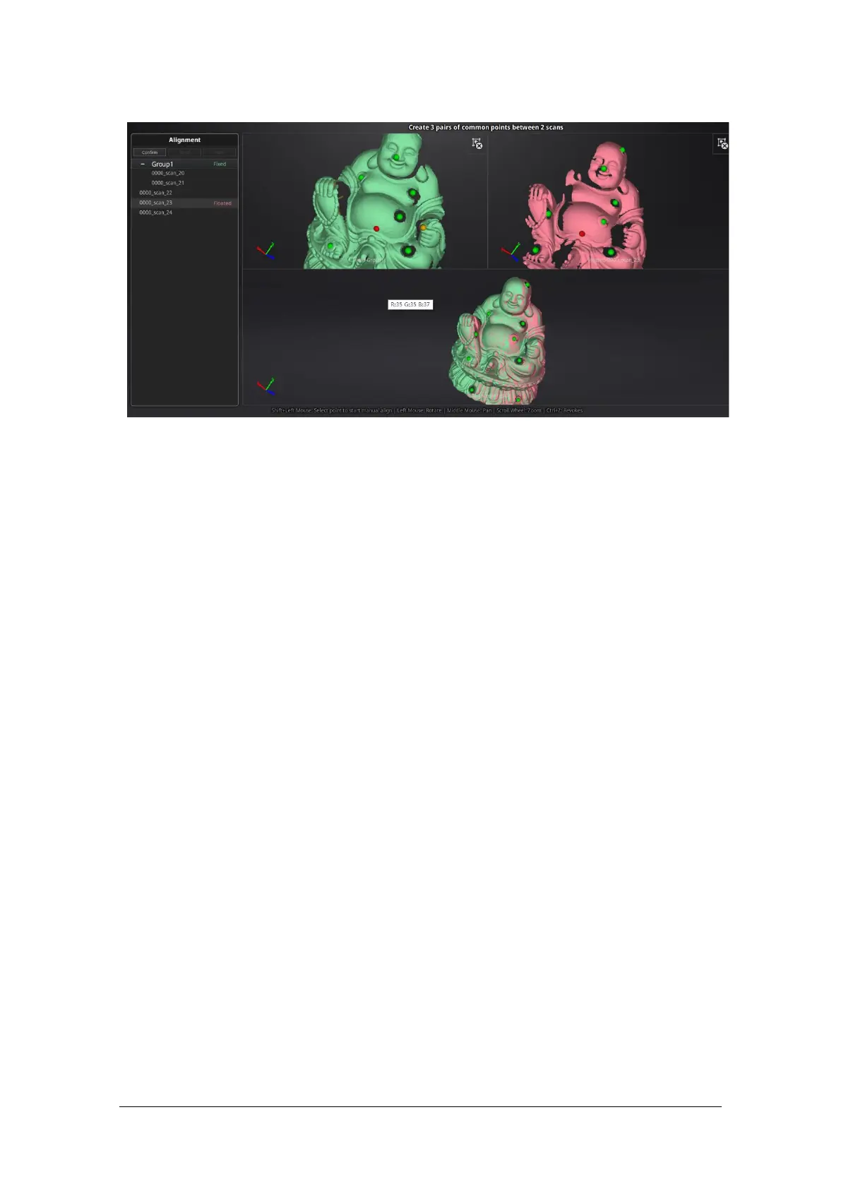 Select 3 points to align the data