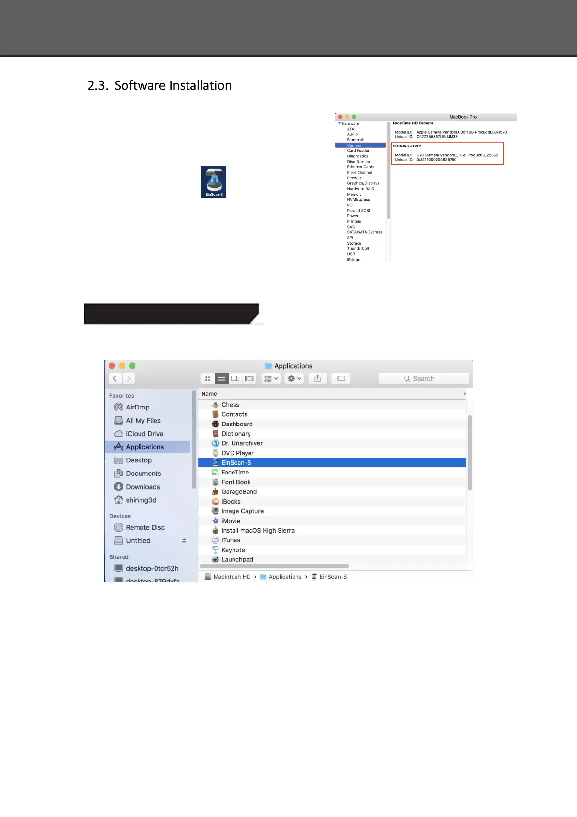 and see if the camera's name is normally displayed under the 'camera' in the 'hardware'