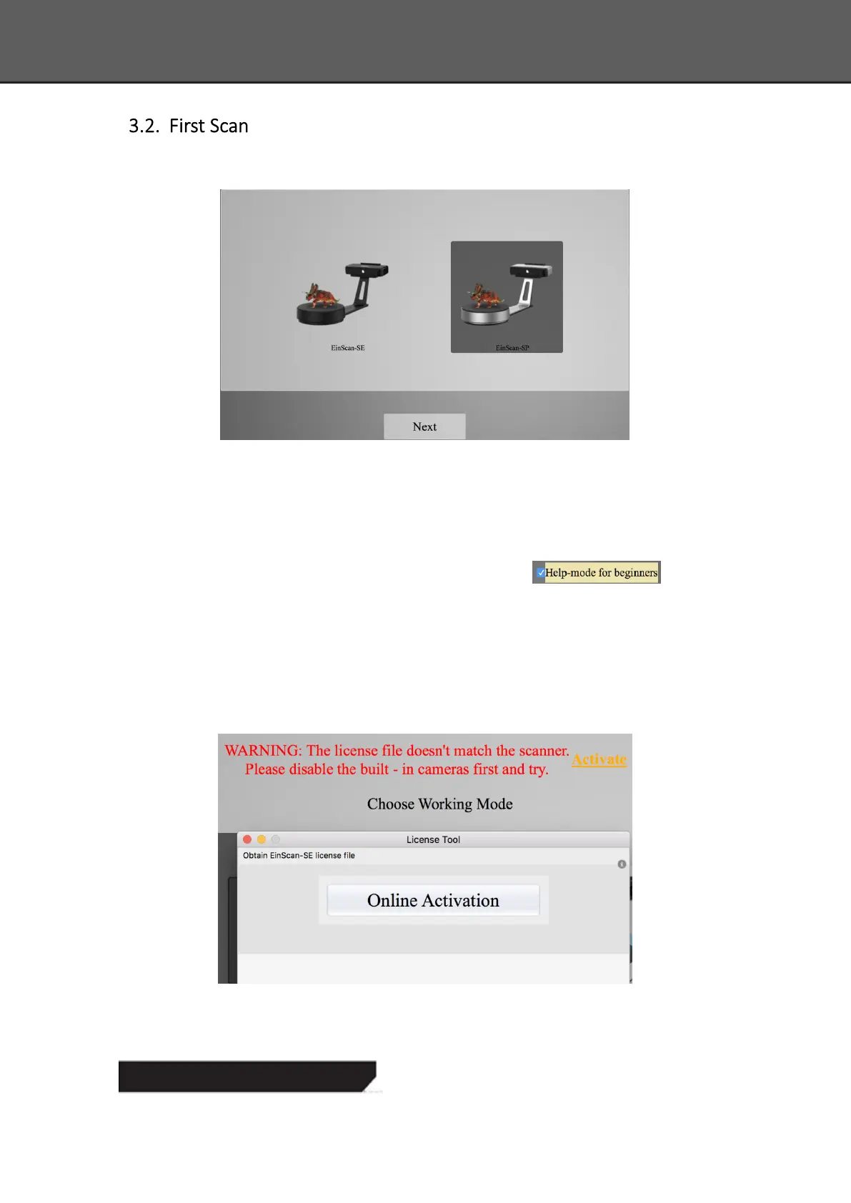 When a warning of license file doesn’t match the scanner pops up when entering scanning mode,
