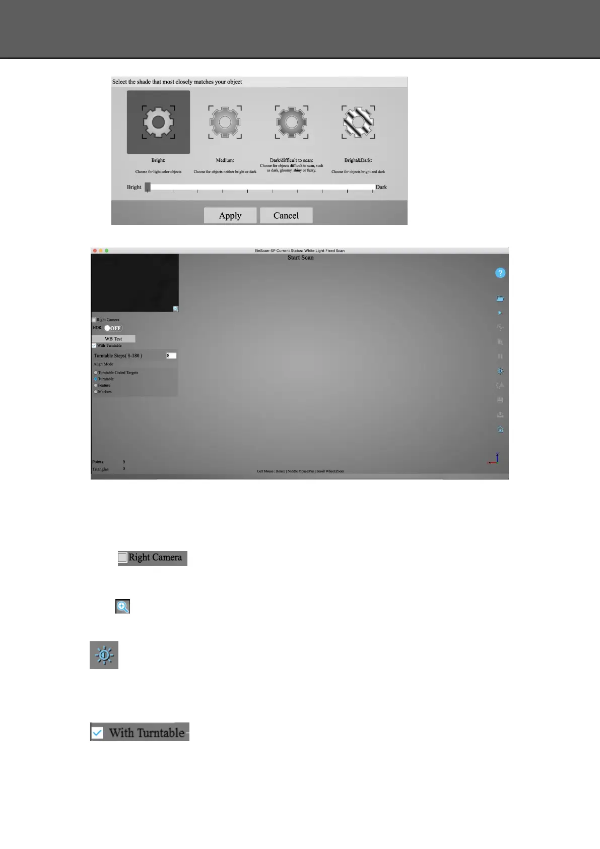 data; if choose this option, the scanner will use turntable to scan and choose turntable steps.