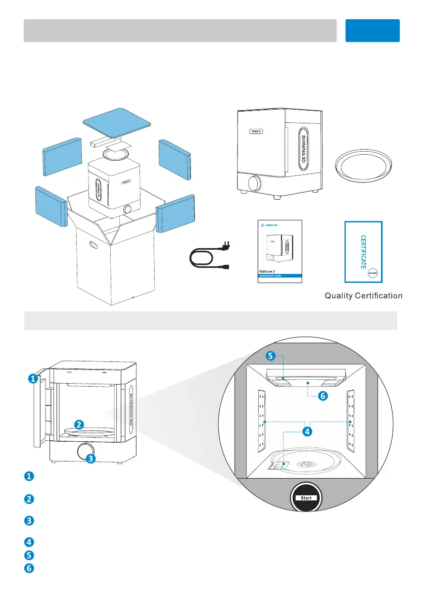 The Fabcure 2 is protected by above and around the machine. During unpacking, foam inserts