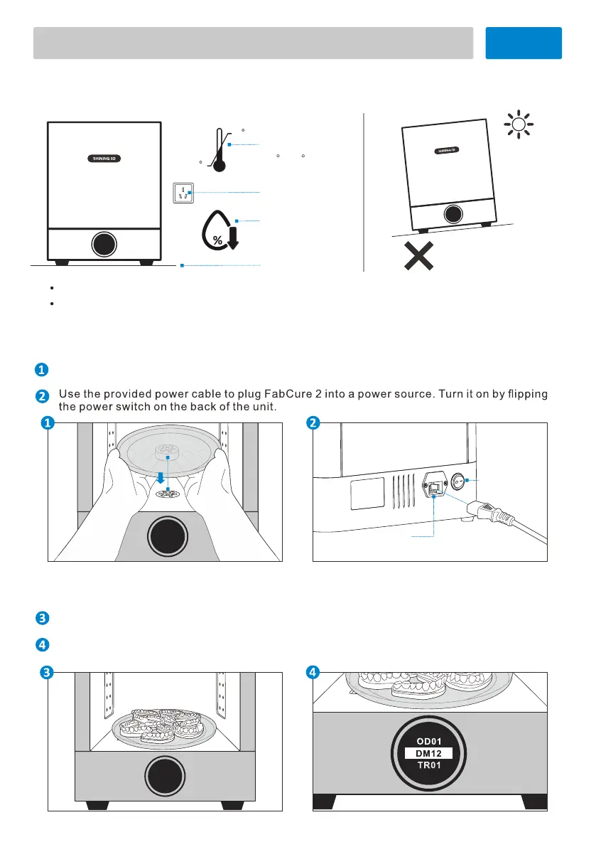 Operate the FabCure 2 in a well-ventilated room with a temperature of 10–30 °C and a