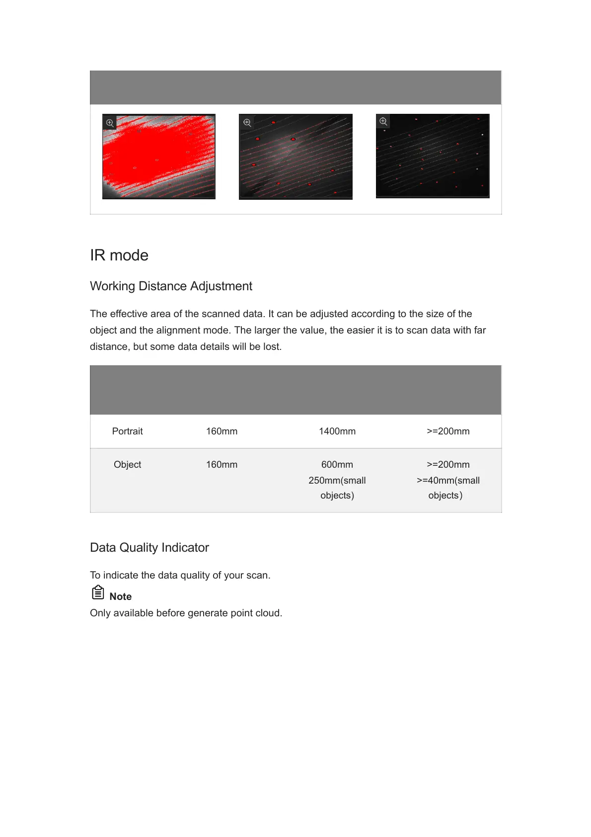 object and the alignment mode. The larger the value, the easier it is to scan data with far