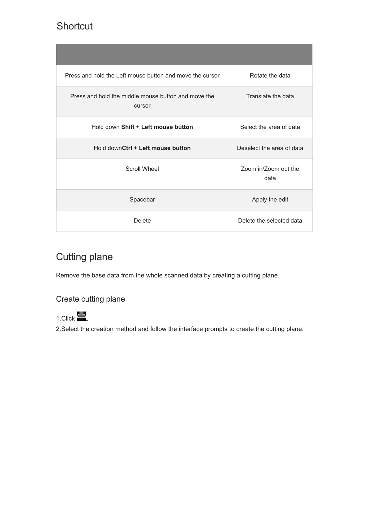 Remove the base data from the whole scanned data by creating a cutting plane.