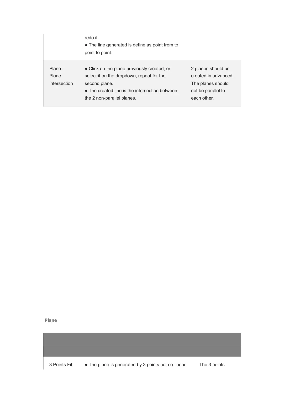 ● The plane is generated by 3 points not co-linear3 Points Fit . The 3 points