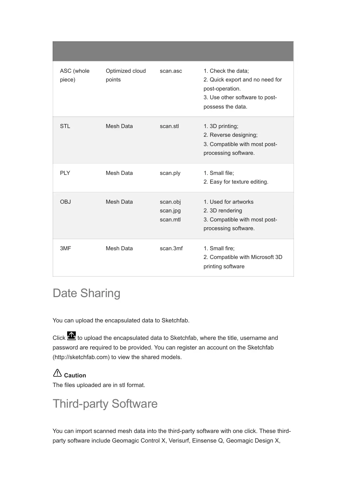 PLY Mesh Data scan.ply 1. Small file;