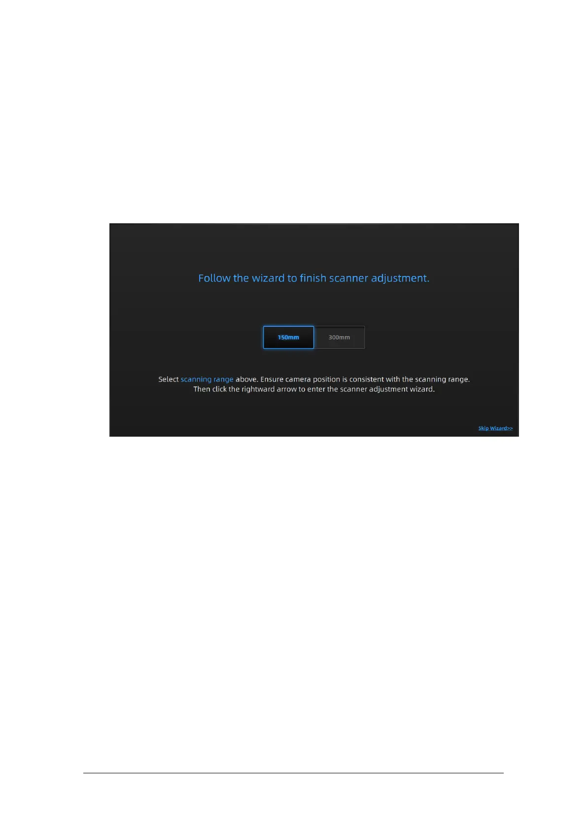 The scanner has two scanning ranges, 150mm and 300mm, which can be selected depending on