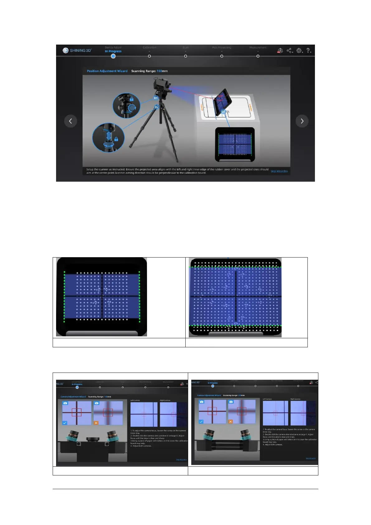 the calibration board and the projected cross should aim at the center point. The scanner aiming