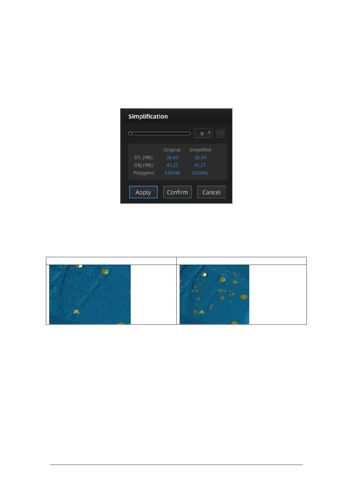 Click “Confirm” button to apply the “Simplification” setting.
