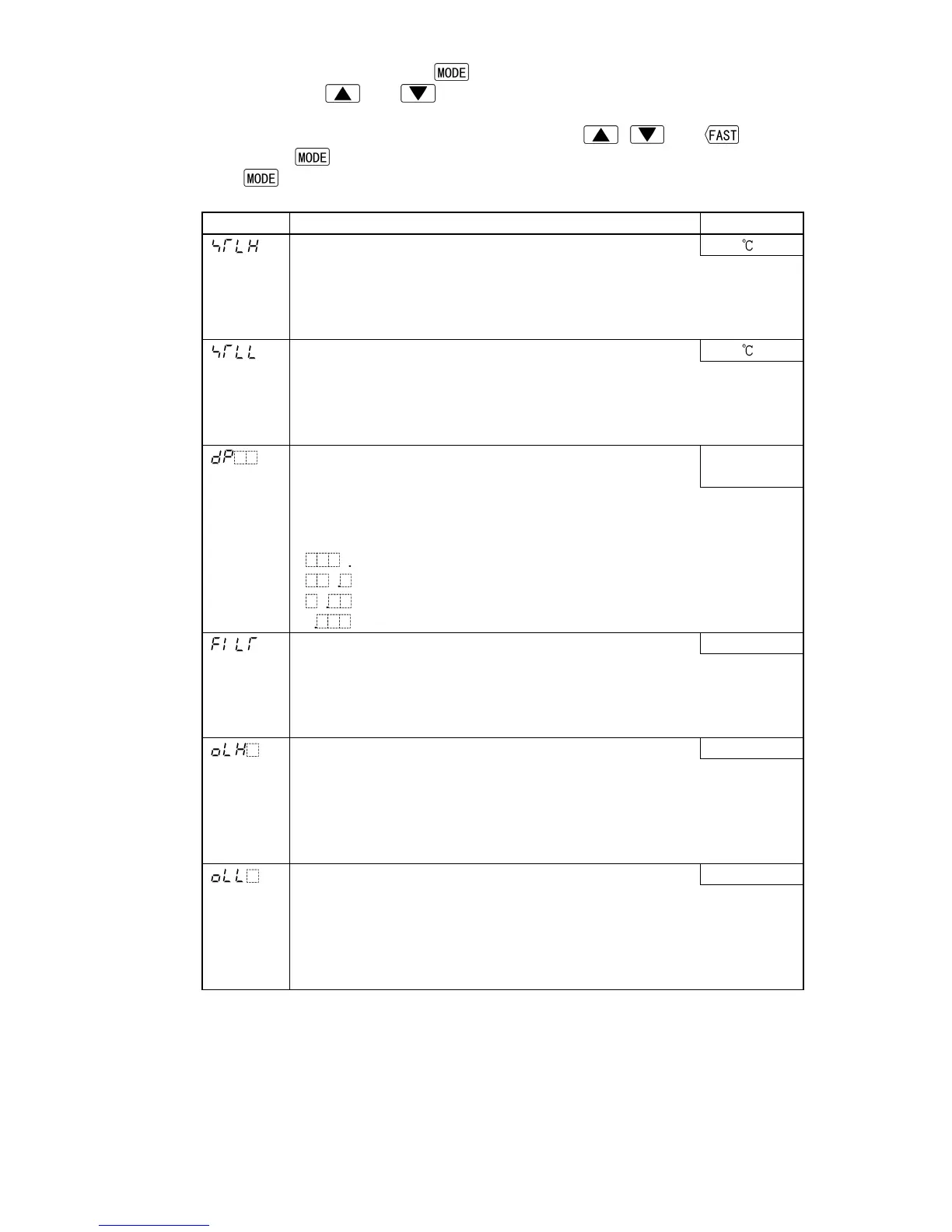 • Setting range: Input range low limit to scaling high limit value