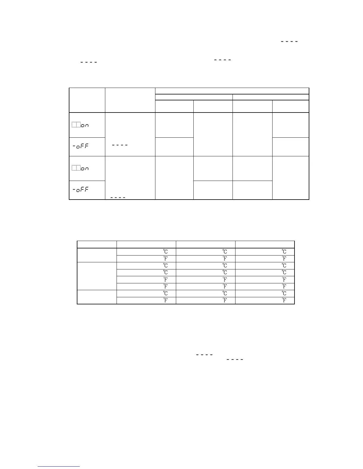 Indication range and Control range for thermocouple inputs other than the above: