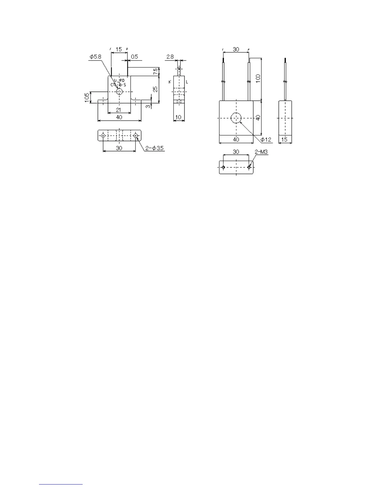 3.3 CT (Current Transformer) External Dimensions (Scale: mm)