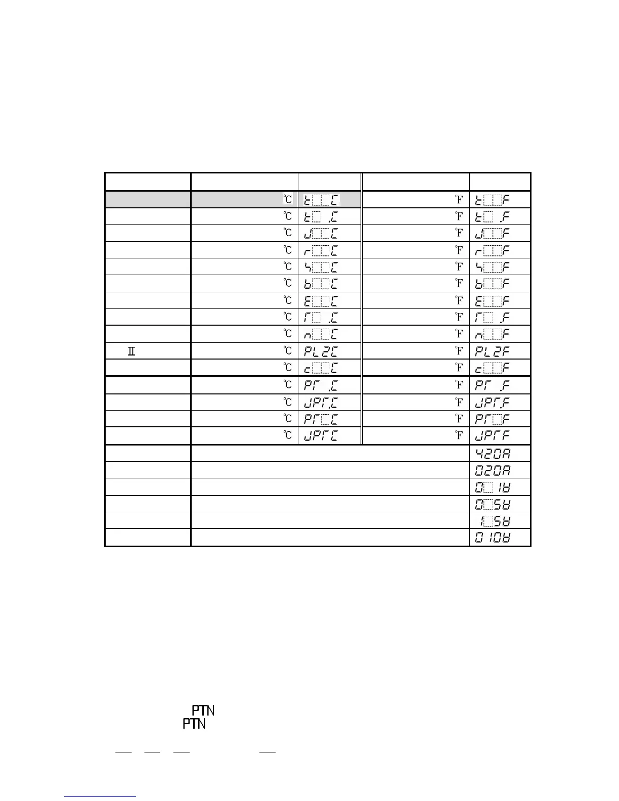 The sensor input character and temperature unit are indicated on the PV display and
