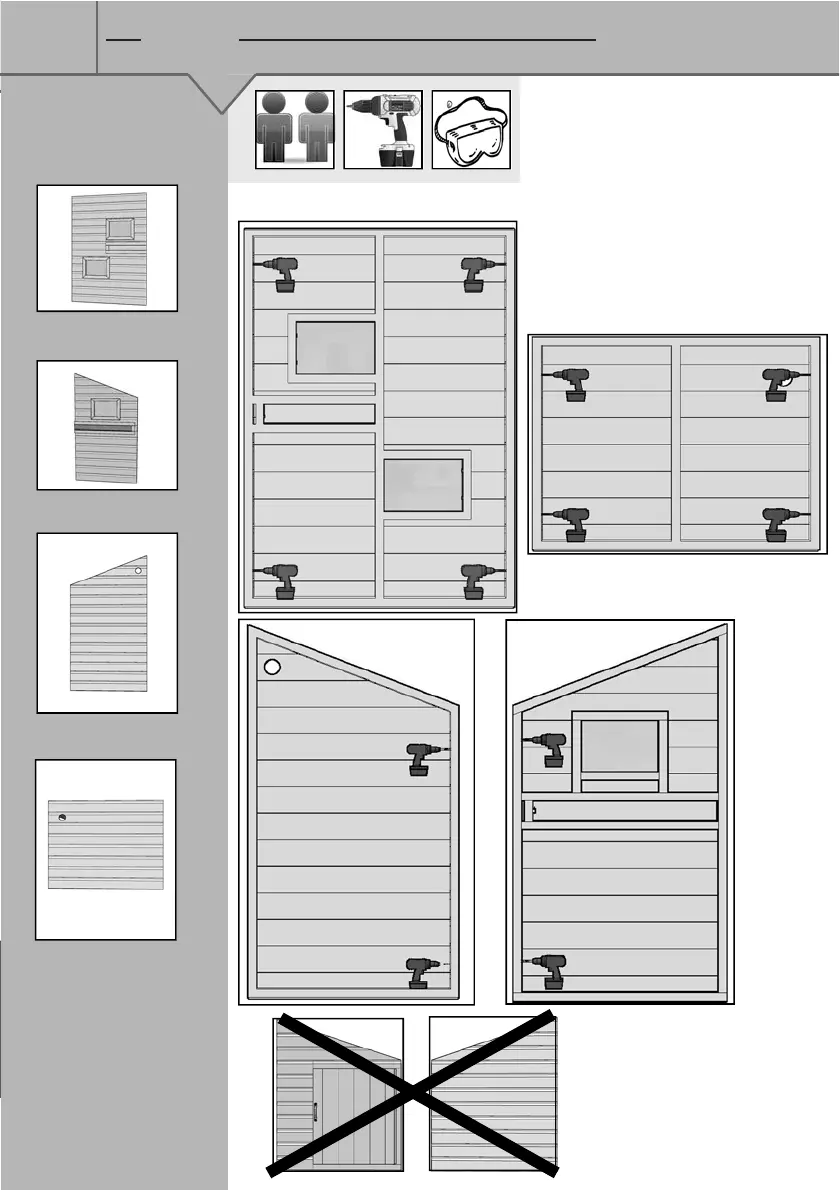 Only drill 2 holes through the side of the framework on the back of the panels as shown
