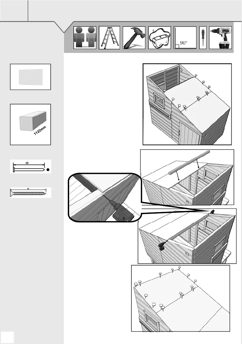 Also nail 3x40mm into the roof bearer through the roof panel fitted previously,