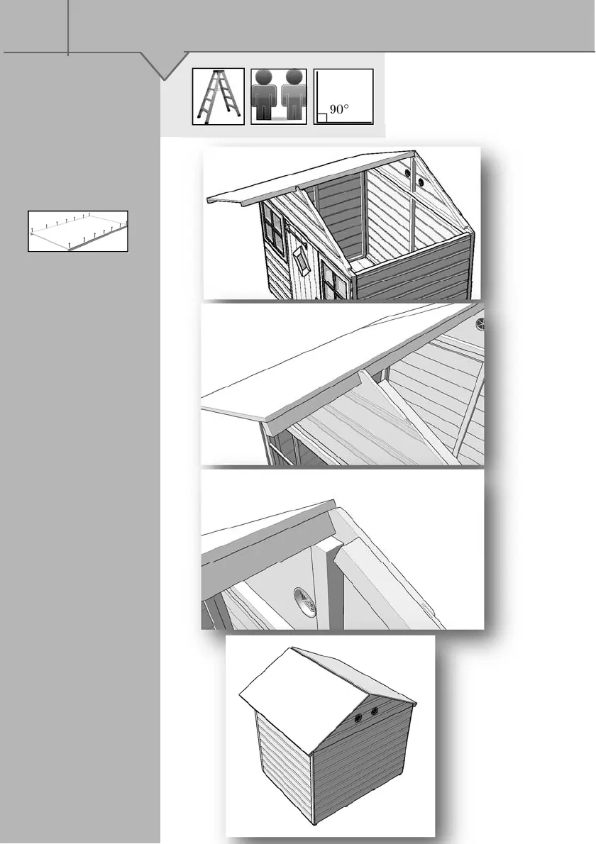 GB-IE Place the roof panels on the building lining them up with the cladding at the back and with each other