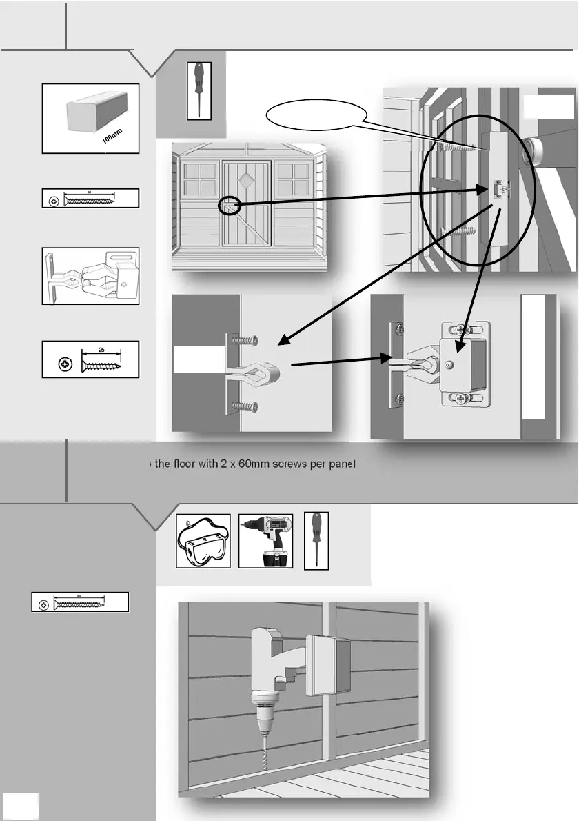 GB-IE Fix the walls to the floor with 2 x 60mm screws per panel